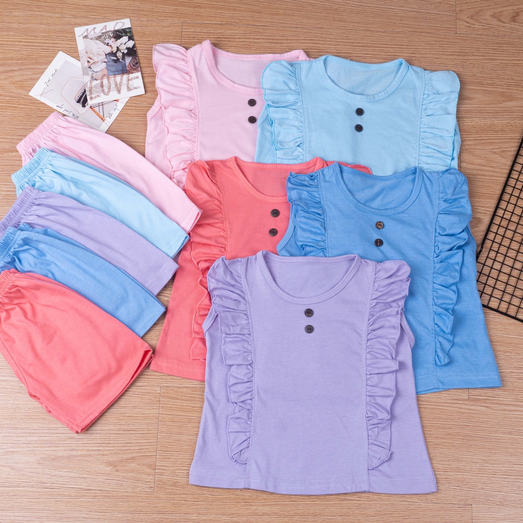Fashion Bayi & Anak > Pakaian Anak Perempuan > Jas & Setelan > IL - SET IVE KANCING ANAK PEREMPUAN RUFFLE | SETELAN BAJU ANAK LENGAN BUNTUNG CELANA PENDEK