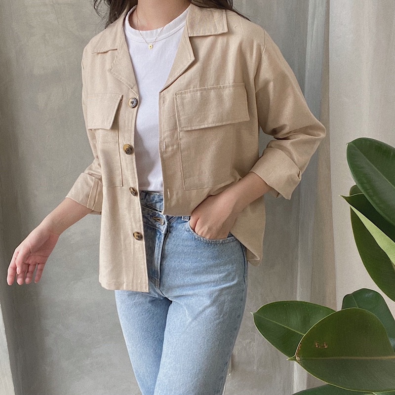 Detail ilook | Claryn Outer Linen | Kemeja Linen | Atasan Wanita | Cardingan Saku