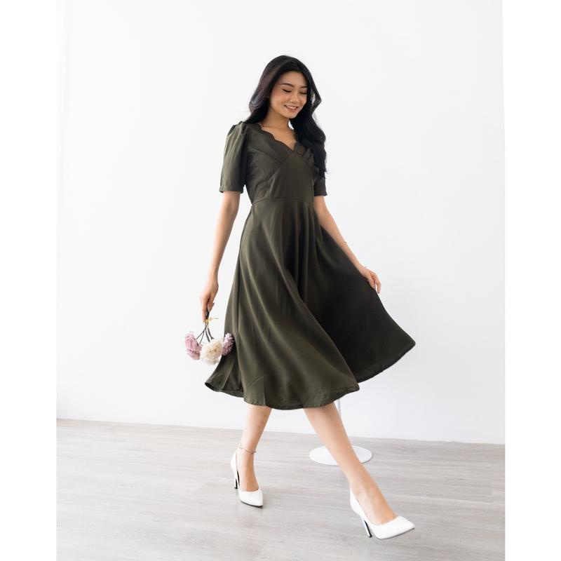 Detail ilook | Dress Ombak | Midi Dres Korea | Fashion Korean Stlye | Leonara