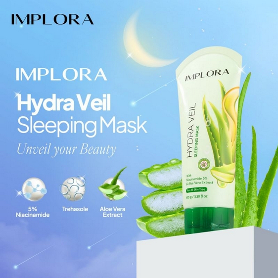 3. Oleskan Implora Hydra Veil Sleeping Mask secara merata pada wajah dan leher yang telah dibersihkan. Tepuk-tepuk ringan sampai meresap