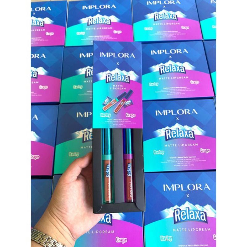 Dalam kemasan terdapat: 1 Implora x Relaxa Matte Lipcream Barley 1 Implora x Relaxa Matte Lipcream Grape