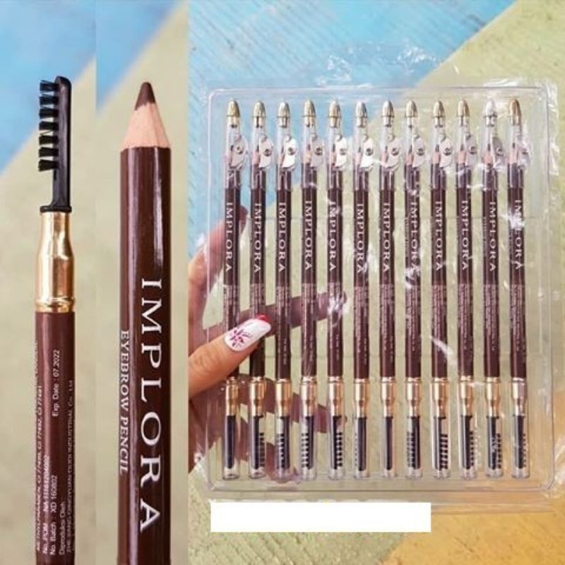 KEUNGGULAN Implora Eyebrow Pencil tahan air (waterproof), tahan lama, tidak mudah luntur dan aman digunakan. Tidak membuat iritasi pada bagian mata. Cocok digunakan sehari-hari. Dilengkapi juga dengan sikat & serutan / Rautan dibagian tutup pensil alis.