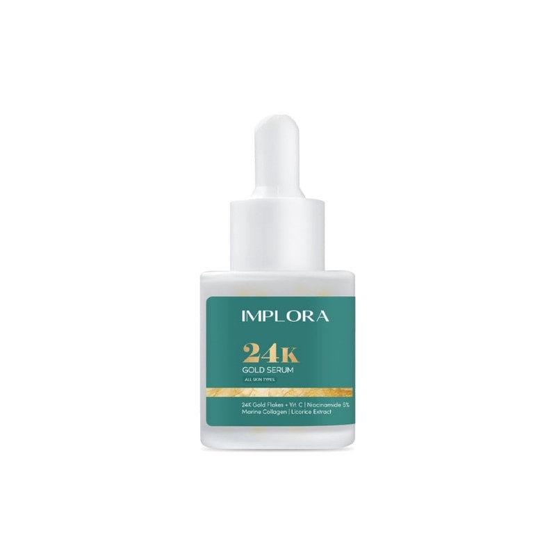 24K Gold Serum Serum ini mengandung Gold Flakes, Vitamin C, Niacinamide 5%, Marine Collagen, dan Licorice Extract. dapatkn kulit wajah awet muda dan elastis