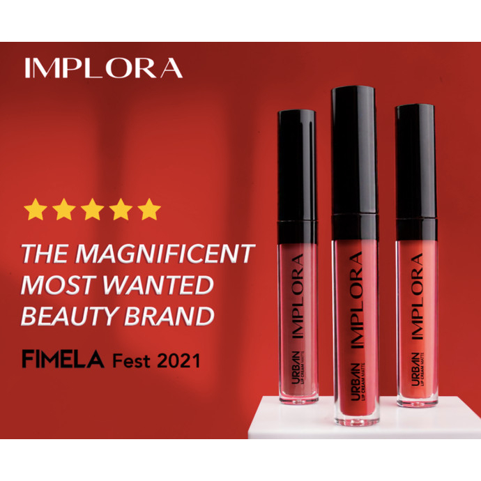 Implora Urban Cream Matte dengan formula yang lembut, mengandung vitamin E yang berfungsi sebagai antioxidant sehingga dapat membantu menjaga kelembaban alami bibir hingga tampak memukau. Sapuan warna yang indah membuat bibir terlihat lebih menarik. Tersedia dalam 20 warna yang cocok dalam setiap kesempatan. 01. DUSKY NUDE 02. TERRA COTTA 03. DARK BERRY 04. MEDELINE 05. ALLURE 06. LUMIERE 07. TRUFFLE MAUVE 08. PINK LATTE 09. BUTTERSCOTCH 10. GINGERBREAD 11. RED BEAN 12. BROWN SUGAR 13. HAZELNUDE 14. BABY ROSE 15. SALMON PINK 16. DUSTY PEACH 17. RED WOOD 18. RUBY 19. CAROLINA 20. RED GALA