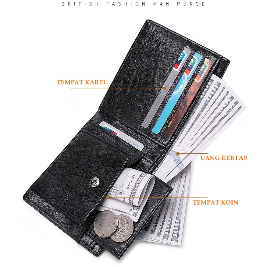 KOMPARTMEN DOMPET : 1. 2 SLOT UANG KERTAS 2. 5 SLOT KARTU ATM 3. 1 SLOT TEMPAT KOIN