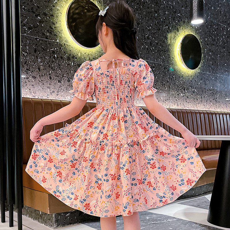 Fashion Bayi & Anak > Pakaian Anak Perempuan > Dress > impor Gaun putri gadis Chiffon Western Style yang keren Baju Anak Perempuan Lengan Pendek Musim Panas Gaun Kain Bunga Baru