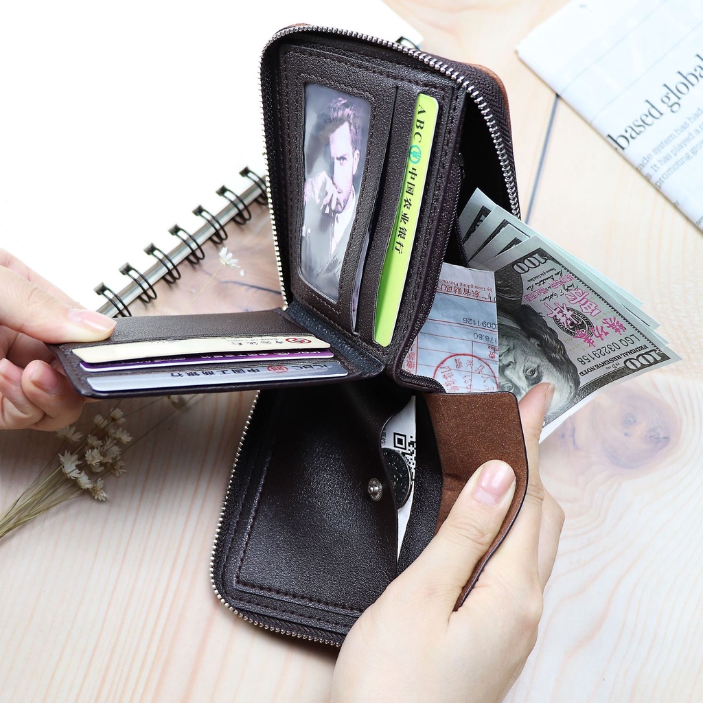 KOMPARTMEN DOMPET : 1. 4 SLOT KARTU ATM 2. 2 SLOT KTP / SIM / FOTO 3. 1 SLOT TEMPAT KOIN 4. 1 SLOT UANG KERTAS LIPAT 5. 1 SLOT UANG KERTAS ZIPPER