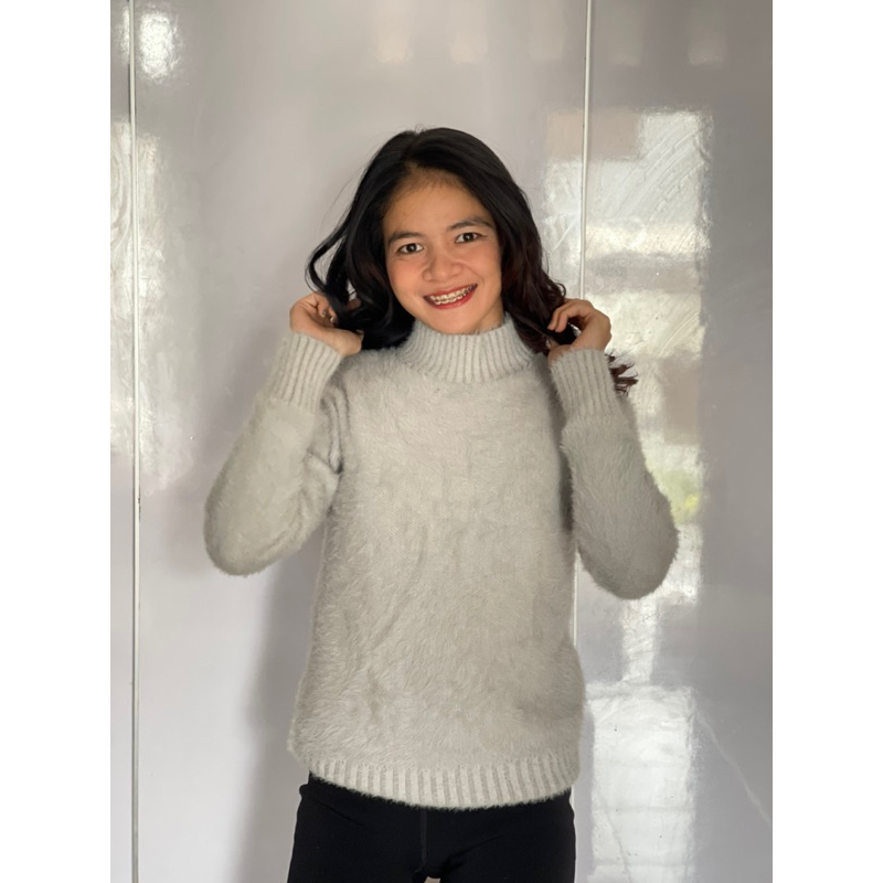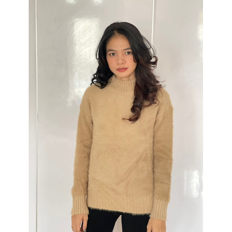 Detail IMPORT MOLLAD Sweater Fur Faux Baju Hangat bulu Winter Rajut Infinity Musim Dingin leher tinggi korean style