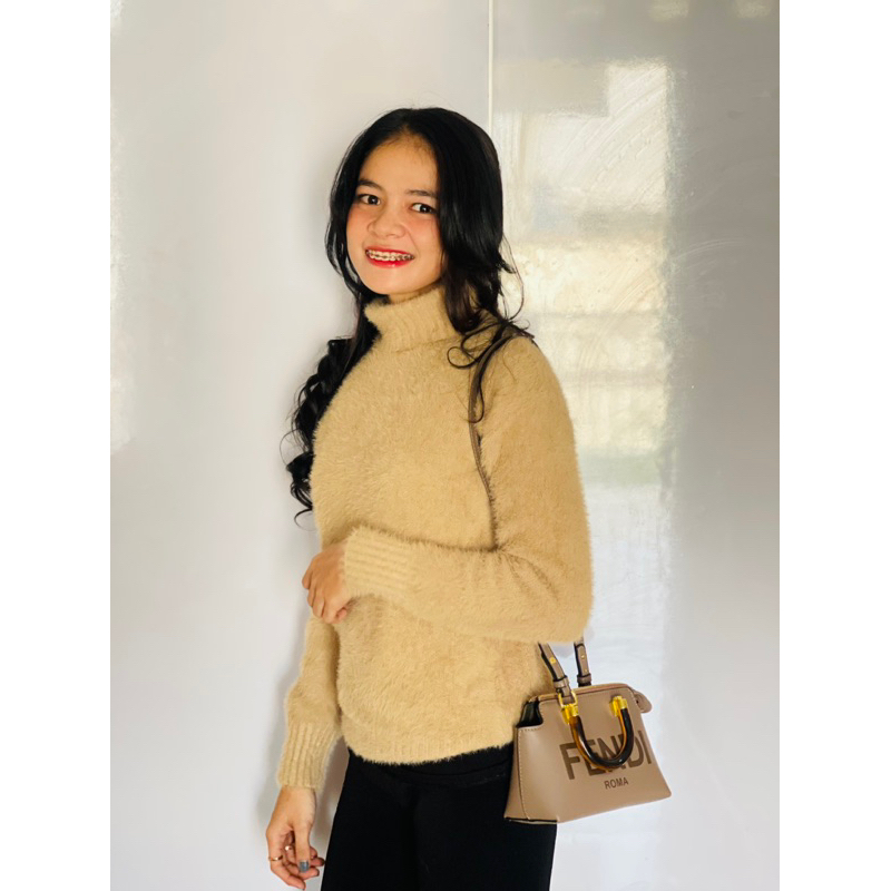 Detail IMPORT MOLLAD Turtleneck Fur sweater pullover bulu rajut Infinity lembut thermal hangat winter musim dingin korea
