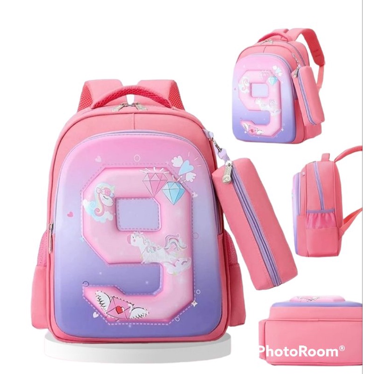 -@produk asli import Tas sekolah SD model angka terbaru @-3 resleting+ dompet pencil @-6 warna 1.navy 2 biru 3merah 4ungu 5.fanta 6.pink
