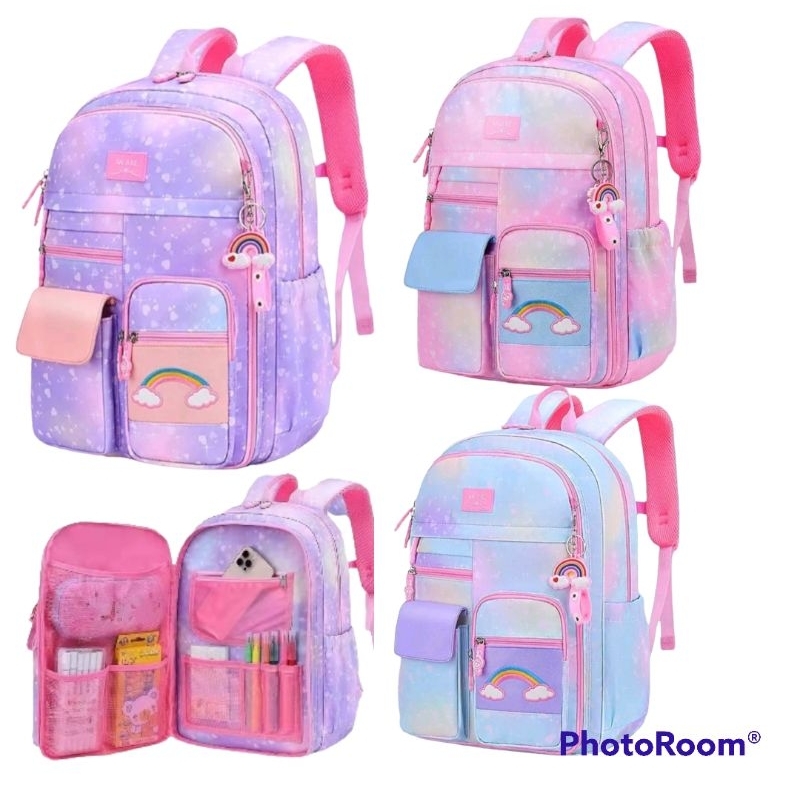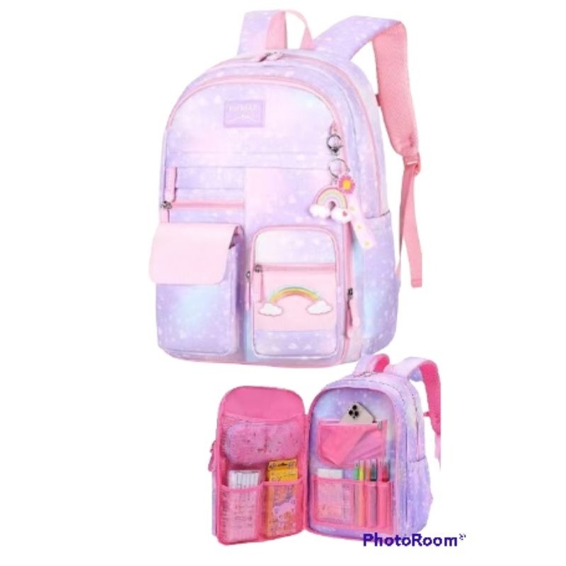 @.produk asli100% import Tas sekolah model @-abg korea open set bisa samping @bahan Polyester halus busa nilon @memiki 2warna 1.ungu pink 2.pink biru @, sangat Bagus cocok anak ABG kelas 1,-6 @SD -SMP.jalan sehari hari sangat kren bangat elegan @ukuran size 17 inchi T41-5. xL31xP19