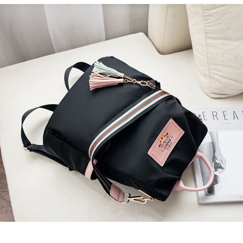 Tas ransel wanita cantik, murah, bahan, jahitan bagus. Bahan tas anti air, tidak perlu takut ketumpahan air! Cocok digunakan saat sekolah, kuliah, dan berpergian. Pas untuk segala situasi! Terdiri dari 1 resleting utama anti maling di bagian belakang dan di dalamya terdapat 2 kantong dan 1 resleting kecil, aman banget sist! Ada 1 resleting bagian depan juga sist, muat power bank. hp dan barang lain. Ada 2 kantong di kanan kiri tas, botol minum, payung dll bisa masuk sis! Bagian dalam ada lapisan kain furing juga loh! ANTI JEBOL!!