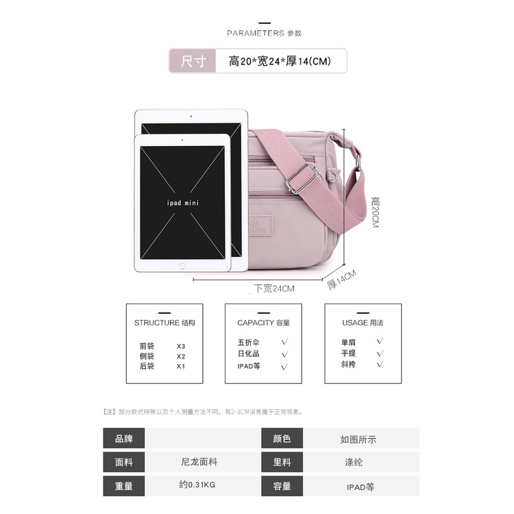 Tas selempang import model terbaru warna cantik dengan kualitas premium!! Cocok digunakan untuk pesta, jalan-jalan, bepergian. pas disegala situasi. Bahan polyester (anti air) tebal kualitas premium! tidak mudah JEBOL! Resleting kuat, anti seret dan tidak mudah rusak. Kapasitas penyimpanan luas, terdiri dari 2 resleting utama, 1 resleting dalam, 1 resleting belakang dan 2 resleting depan. muat banyak barang sist! Tali tas bisa diatur sesukamu, fleksibel banget jadi lebih mudah diatur! Kualitas premium jaminan termurah! Ayoo buruan, tampil cantik dan elegan dengan Tas Souyete!