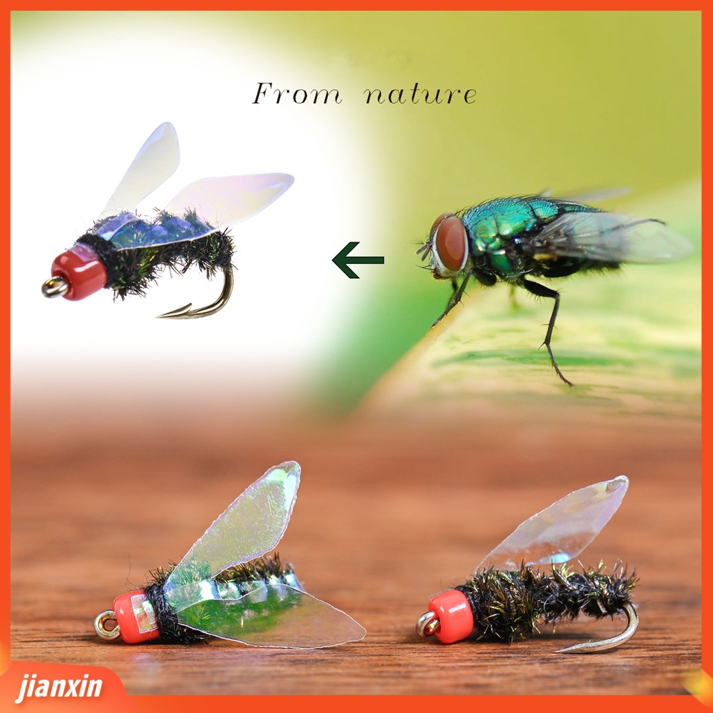 Detail (In Stock) 40Pcs Umpan Pancing Kepala Merah Tubuh Hijau Lalat Kecil Realistis Penampilan Kail Pancing Peralatan Pancing