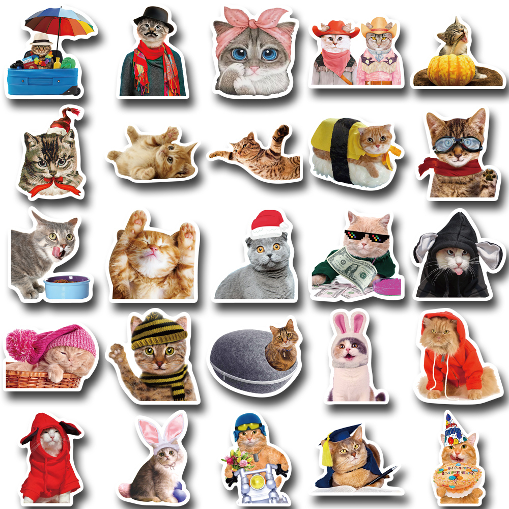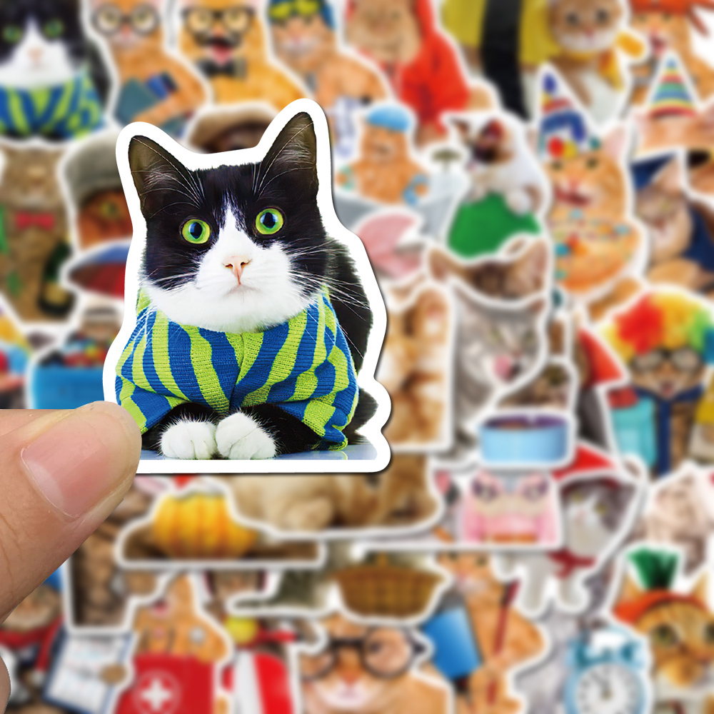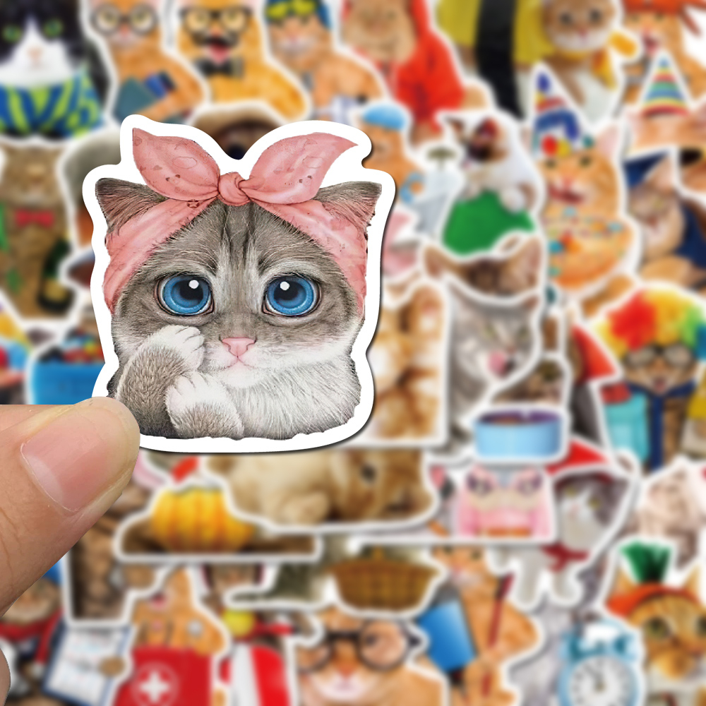 [in Stock] 50 Pcs Kucing Menyenangkan Lucu Stiker Indah Kreatif Tangan Buku Besar Stiker Laptop Ponsel Cangkir Air Tahan Air Stiker