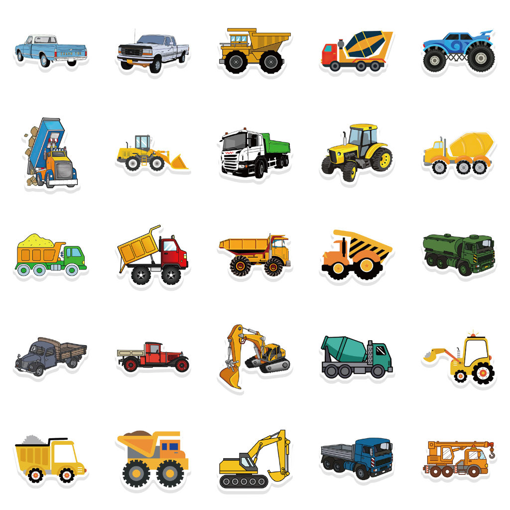 Detail [in Stock] 50pcs Kartun Truk Teknik Mobil graffiti Stiker Handphone Laptop Tahan Air Stiker Mainan Anak
