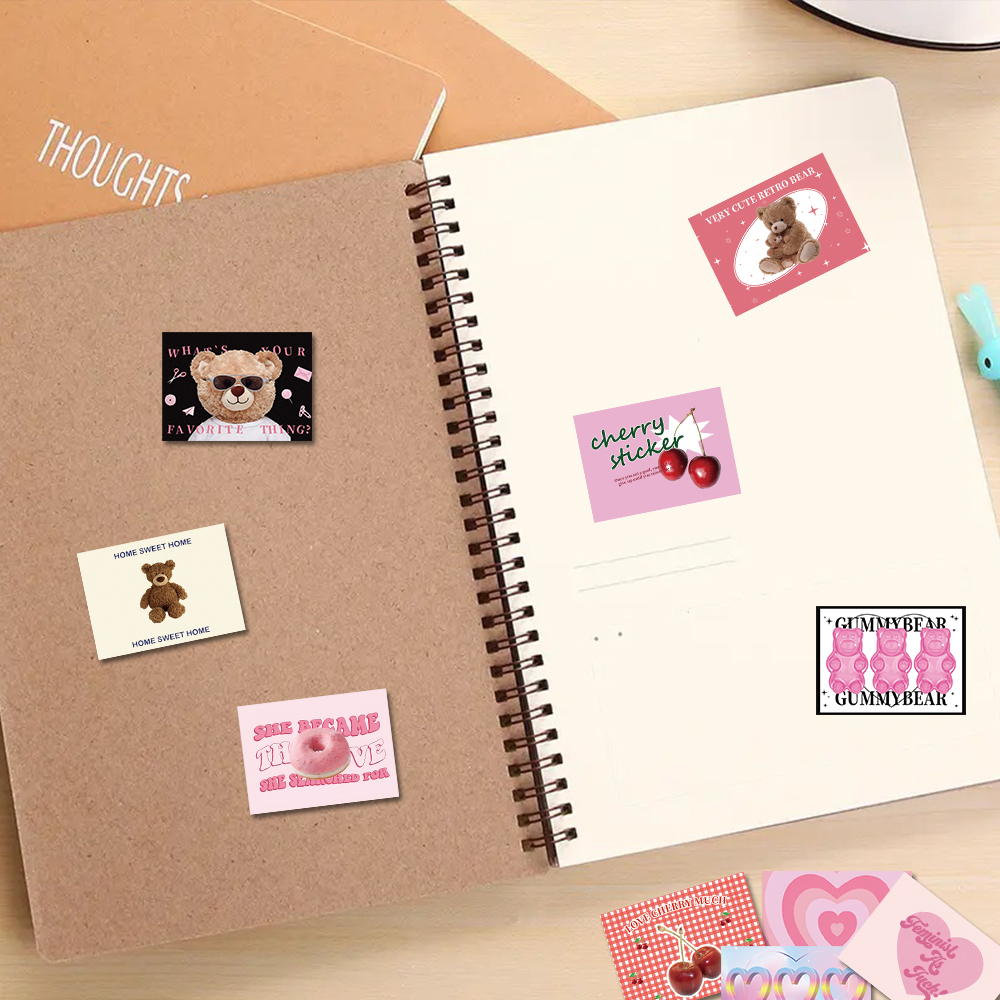 Buku & Alat Tulis > Buku Tulis & Kertas > Label & Stiker > [in Stock] 53pcs vintage strawberry bear graffiti Stiker Helm Komputer Telepon Dekorasi Tahan Air Stiker