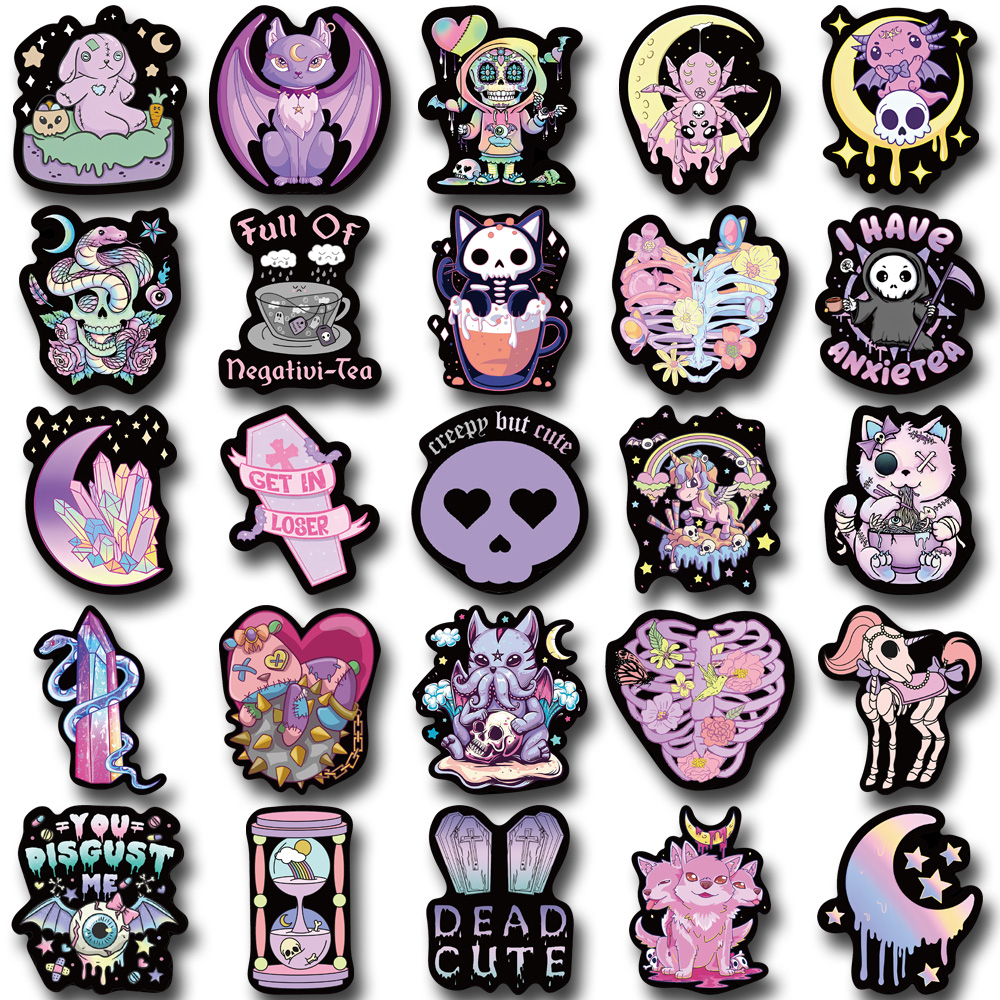 Buku & Alat Tulis > Buku Tulis & Kertas > Label & Stiker > [in Stock] 55 Pcs Gelap Gothic Lucu Kartun Stiker Pribadi Kreatif Tangan Buku Besar Stiker Helm Laptop Tahan Air Decal stickers