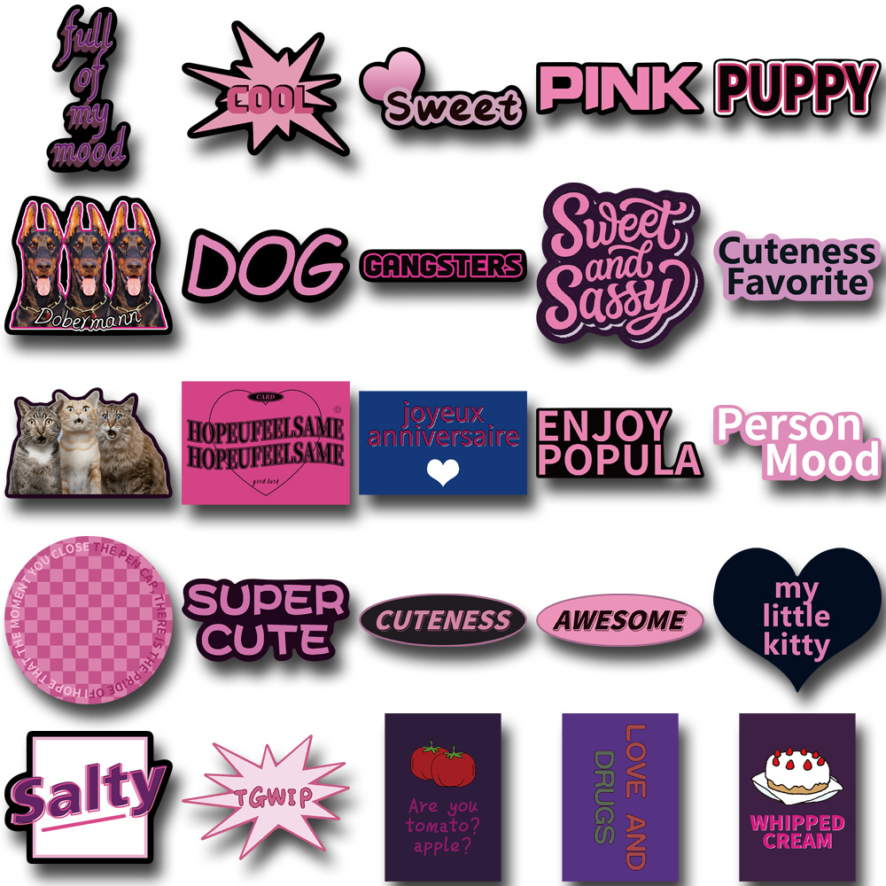 Buku & Alat Tulis > Buku Tulis & Kertas > Label & Stiker > [in Stock]55 Stiker graffiti Bahasa Inggris Hitam Ungu, Dekorasi Helm Hp laptop, Stiker Anti Air