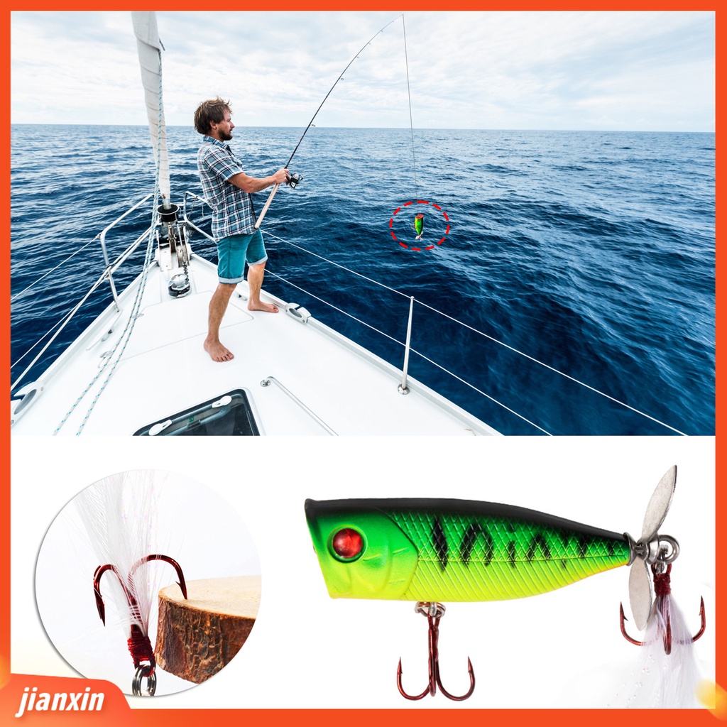 Detail (In Stock) 55mm /6.5g Vivid Fishing Lure Shark Hook Permukaan Air Plastik Mancing Popper Lure Memancing Aksesori