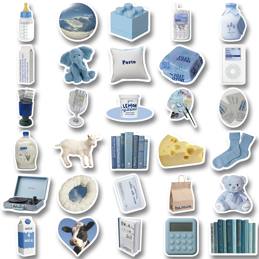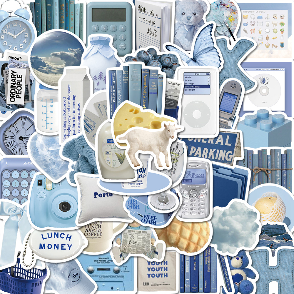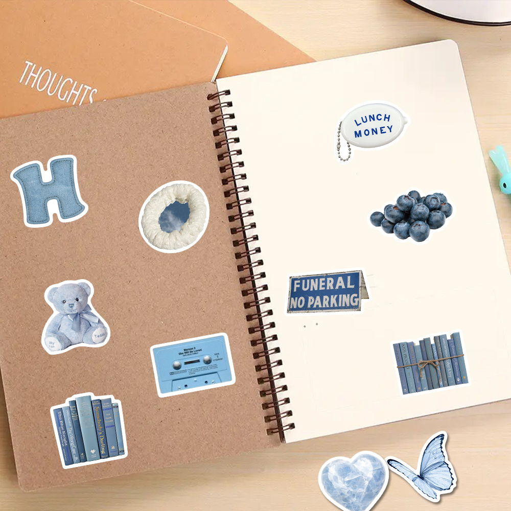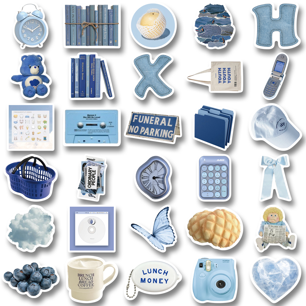 Buku & Alat Tulis > Buku Tulis & Kertas > Label & Stiker > [in Stock] 60pcs ins style Biru Korea graffiti Stiker Untuk Ponsel Laptop Cangkir Air Stiker Tahan Air