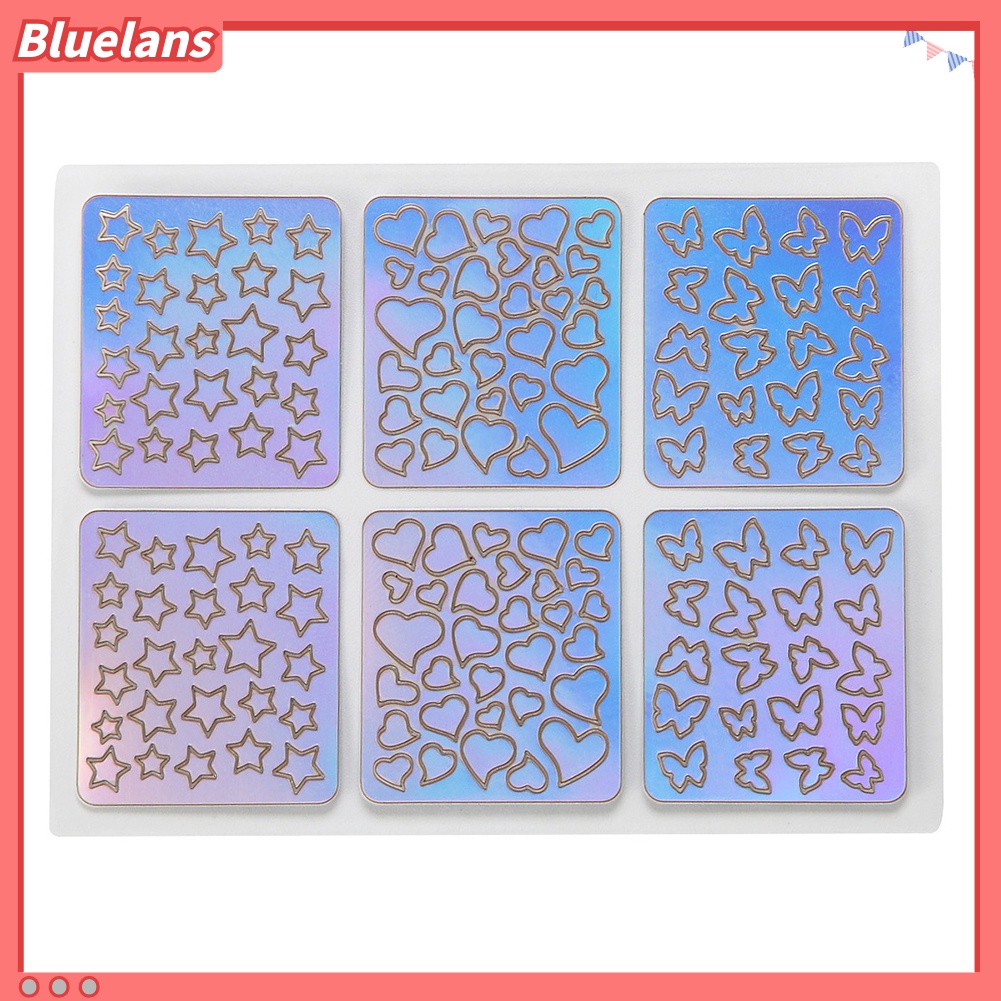 Perawatan & Kecantikan > Perawatan Kuku > Nail Art & Sticker > (In Stock) Kacamata Hitam Lensa Warna Warni ♡12 Lembar Cetakan Stempel Kuku Motif Garis Gelombang Hollow Untuk Manicure