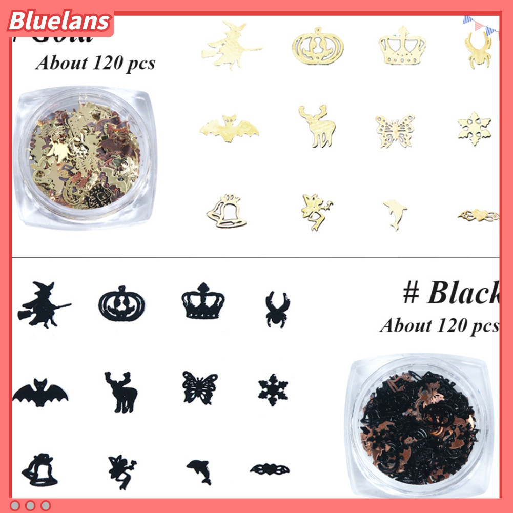 Perawatan & Kecantikan > Perawatan Kuku > Nail Art & Sticker > (In Stock) Kacamata Hitam Lensa Warna Warni ♡120pcs Stiker Kuku 3D Bentuk Labu Kelelawar Halloween Bahan Alloy