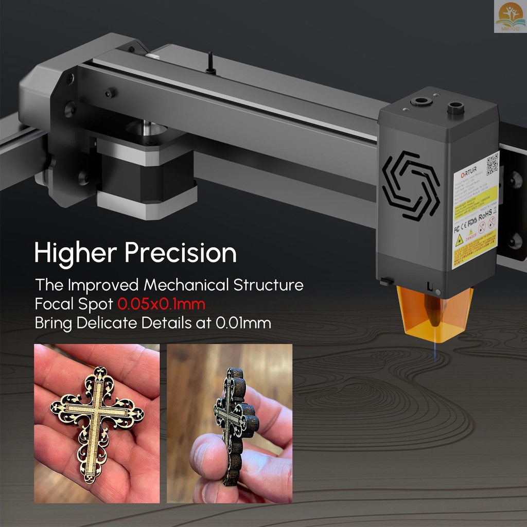 đ Upgrade Engraving Speed: Equipped with new 10W Laser Module which the focusing spot area is only 1/3 of other ordinary lasers, with dual fan and integrated air assist, only 235g weight. Combine precision engraving and high energy cutting at the same time. It can work very well at high speed of 20000mm/mm, save you over half-time than other similar brands.Â