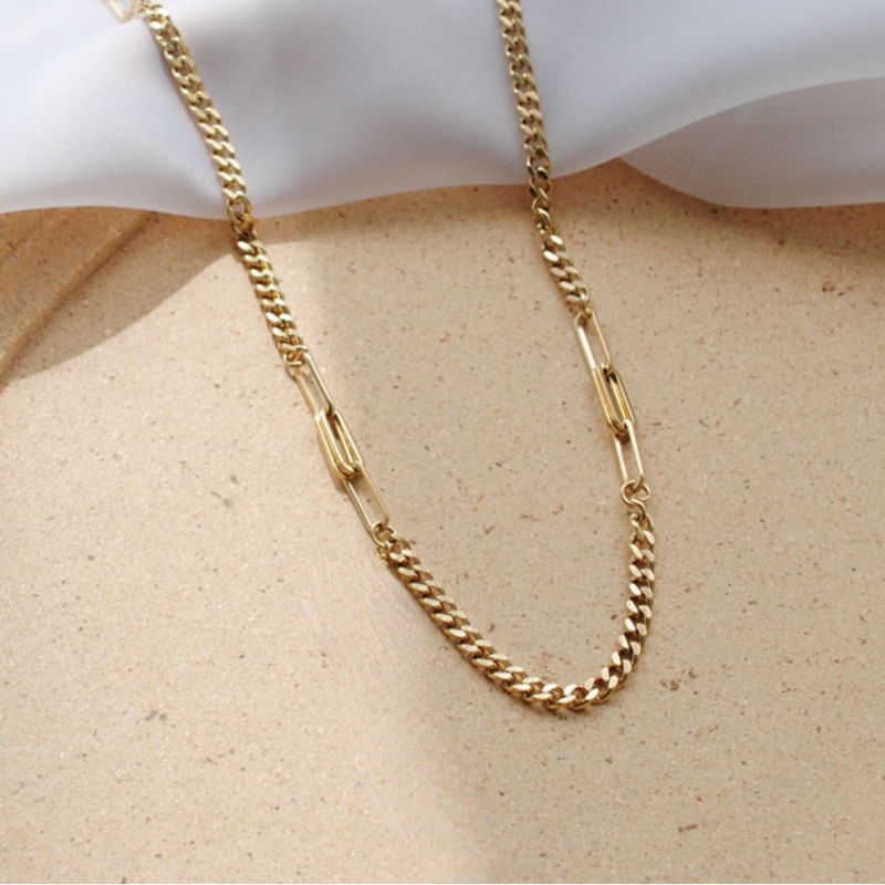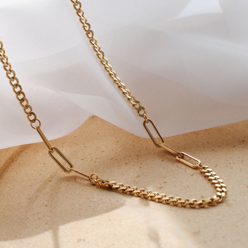 Detail In Stock Sterling Silver S925 Kalung 18K Rantai Emas Serbaguna patchwork Rantai Samping Liontin Aksesoris Modis Dan Minimalis