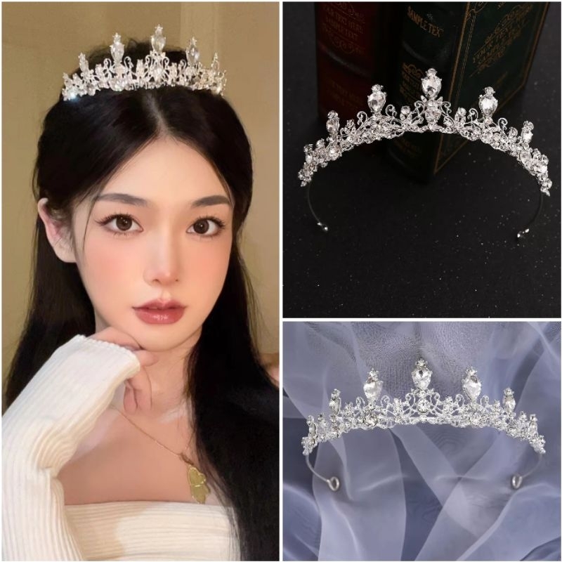 Aksesoris Fashion > Aksesoris Rambut > Hiasan Kepala, Tiara & Mahkota Bunga > Inara Crown - Mahkota Simple Silver - Mahkota Pengantin Wisuda Engagement