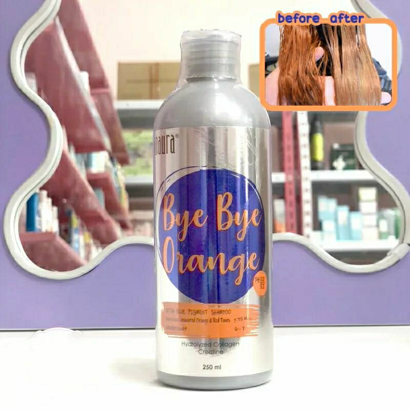 🧡 BYE BYE ORANGE SHAMPOO ✔️ Kaya akan pigmen blue yang berfungsi untuk menetralkan tone orange dan merah pada rambut yang di bleach atau di highlight ✔️ sangat baik digunakan untuk warna warna dingin pada level 7 dan dibawahnya sehingga menjadi berkilau dan elegan tanpa ada efek orange kemerahan ✔️ Diperkaya dengan Hydrolyzed Collagen dan Creatine yang memberikan nutrisi, kelembutan, elastisitas dan kilau pada rambut