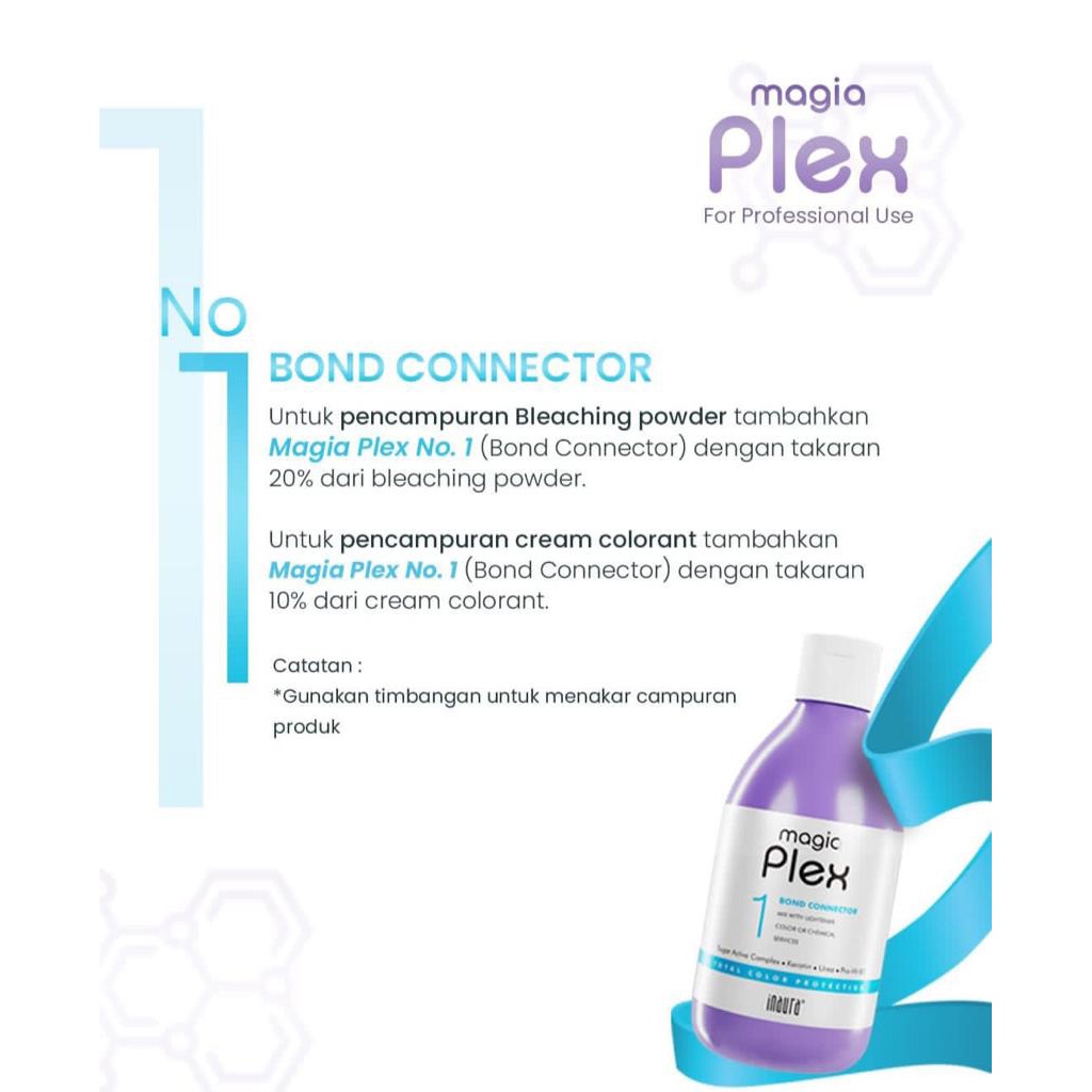 Magia Plex No.1 Bond Connector -Membantu menguatkan ikatan kimia rambut selama proses lightening (Bleaching) atau proses pewarnaan rambut agar serat rambut lebih kuat -Tanpa menghambat proses kenaikan level warna rambut dan penetrasi molekul pewarna -Menutrisi rambut, menjaga kelembaban alami rambut -Rambut lebih mudah diatur -Rambut tetap kuat dan sehat bersinar