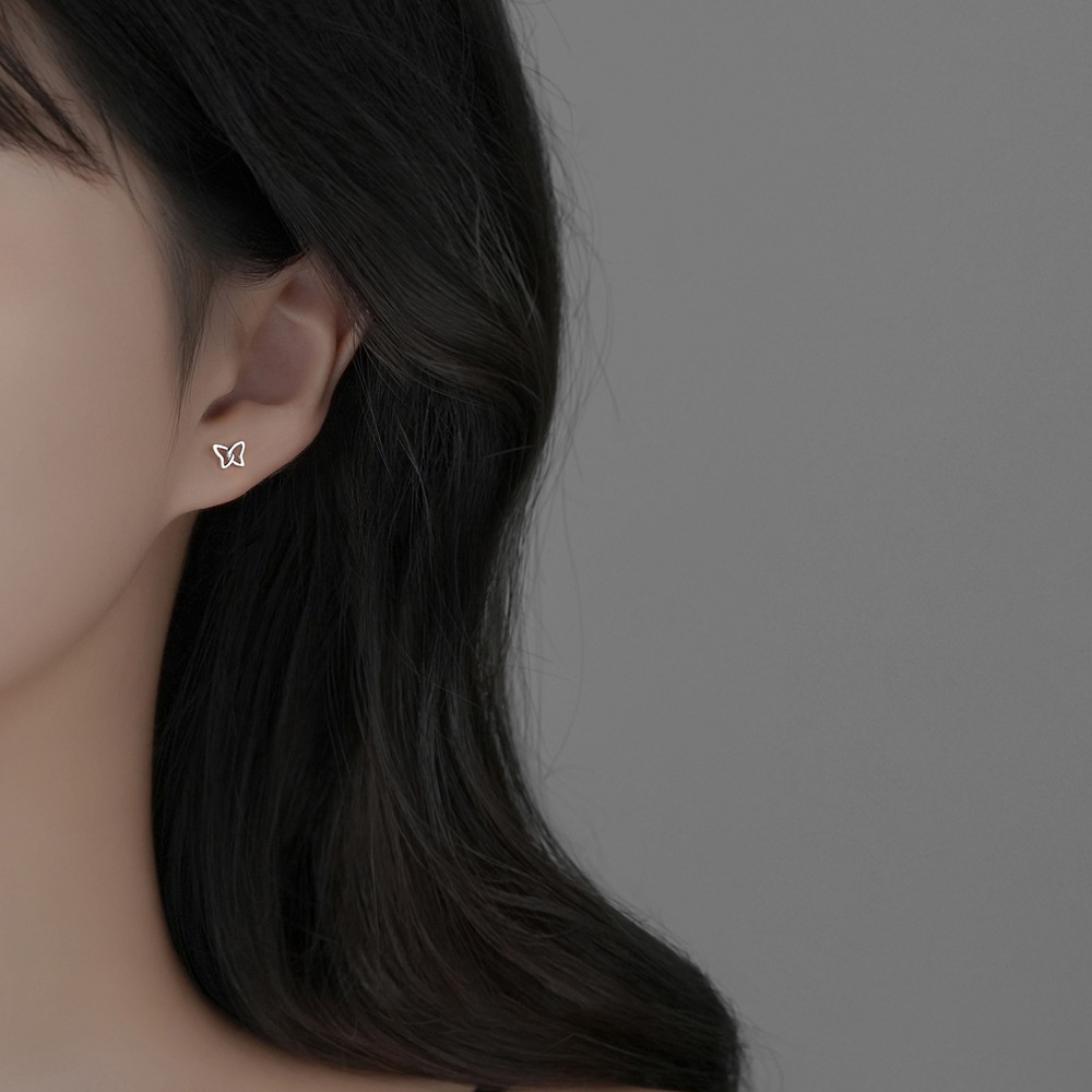 Detail Indah Anting Kupu-Kupu Berongga Perak Halus Untuk Wanita Dengan Jarum Perak S925