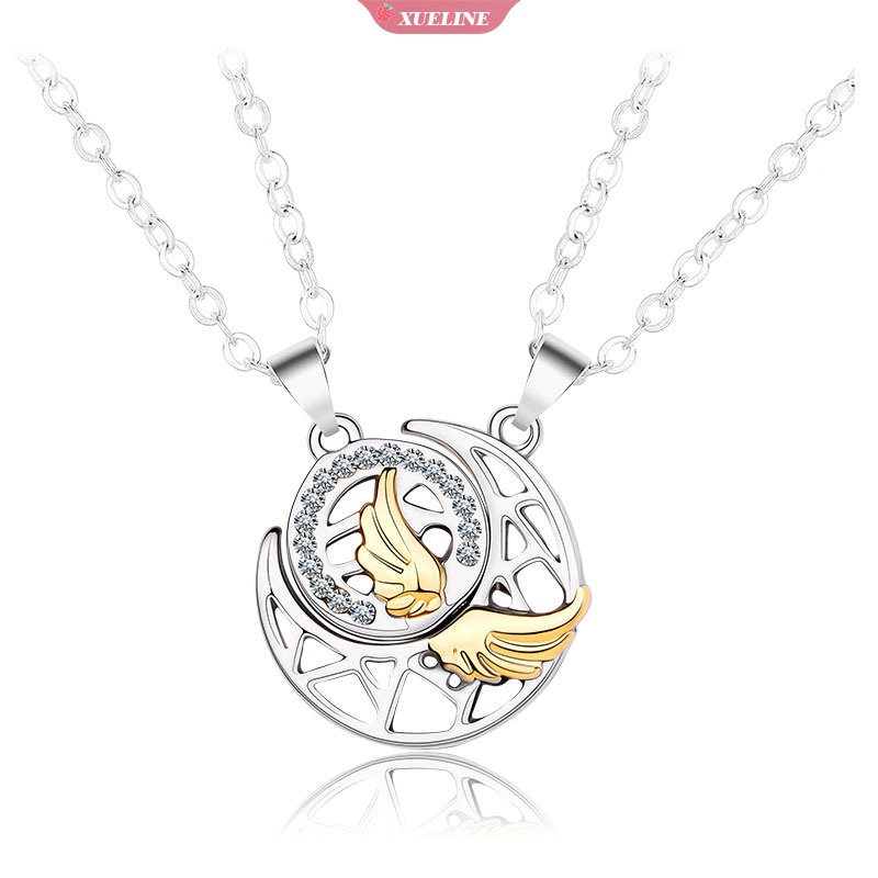 Detail Indah Mode Matahari Dan Bulan Bulu Pasangan Kalung magnet Sederhana Hari Valentine Persahabatan Dua Dalam Satu Hati Kalung Wanita Perhiasan vintage [ZXL]