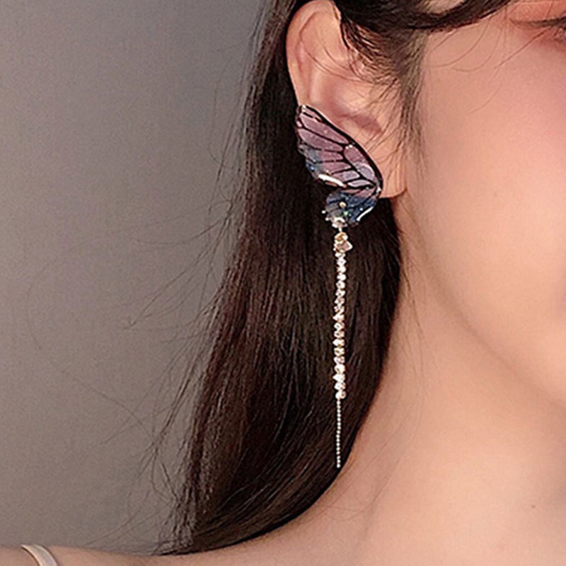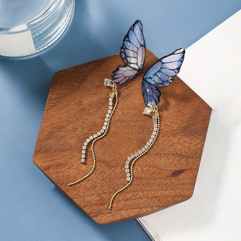 Detail Indah Panjang Rumbai Kupu-Kupu Anting Untuk Wanita Kristal Pink Bunga Menjuntai Anting Fashion Pernikahan Hari Valentine Anniversary Hadiah Perhiasan