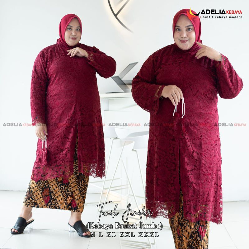 Pakaian Wanita > Kain > Kebaya > IndahKebaya • SETELAN KEBAYA TUNIK JENNIFER JUMBO LD 130 / KEBAYA TUNIK RESLETING DEPAN BUSUI SANGHAI / HITAM PUTIH NAVY MAROON COKSU MOCCA WARDAH LAVENDER LILAC SALEM SAGE SILVER DUSTY