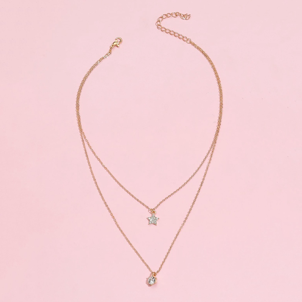 Detail Individual Indah Modis Dan Sederhana Wanita Dua Lapis Bintang Berujung Lima Berlian Liontin Tulang Selangka Rantai