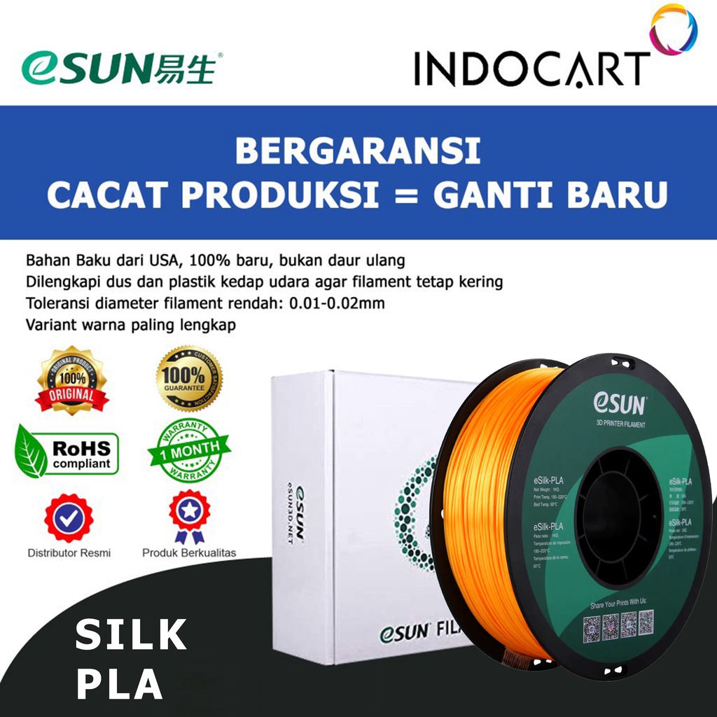Bahan ini memiliki tekstur kilap seperti sutra Permukaan cetak halus tanpa pola garis/lapisan cetakan Merupakan hasil modifikasi dari bahan PLA Gampang dicetak seperti bahan PLA