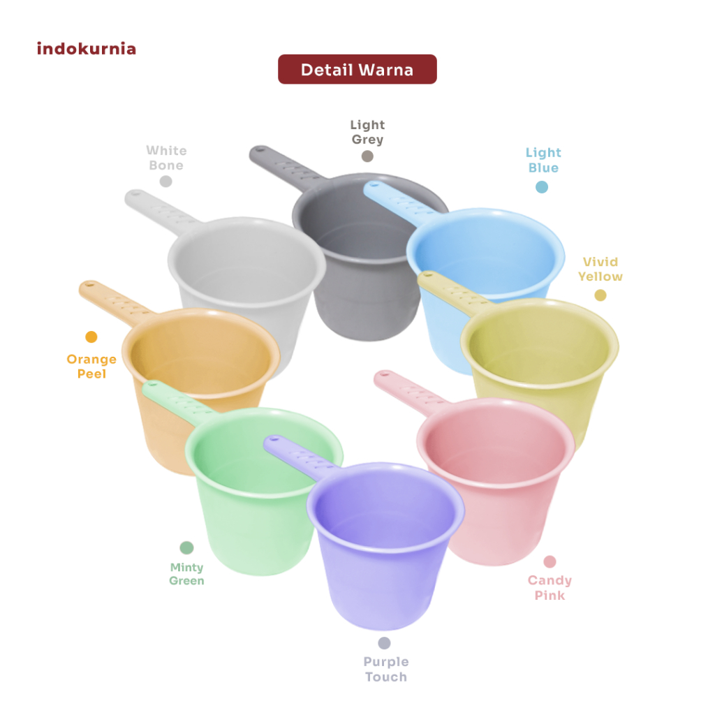 Gayung Mandi Pastel Indokurnia 100% buatan lokal sehingga harga lebih kompetitif. Memiliki tingkat ketahanan banting yang cukup tinggi.