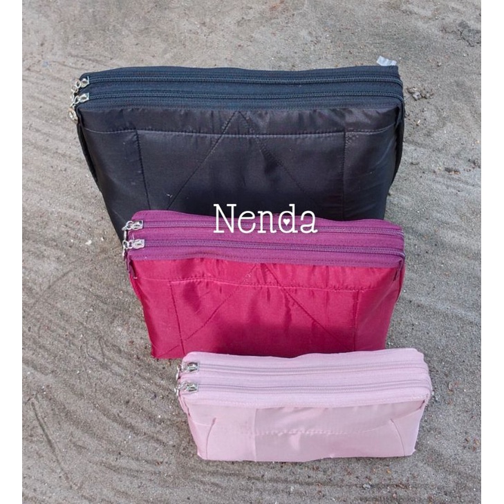 iner tas rajut 2 rets alas lebar.. jadi muat lebih banyak brg y kak bagian dalam ada ktg rets dan ktg tempel matt kain peles busa ati 2 mm