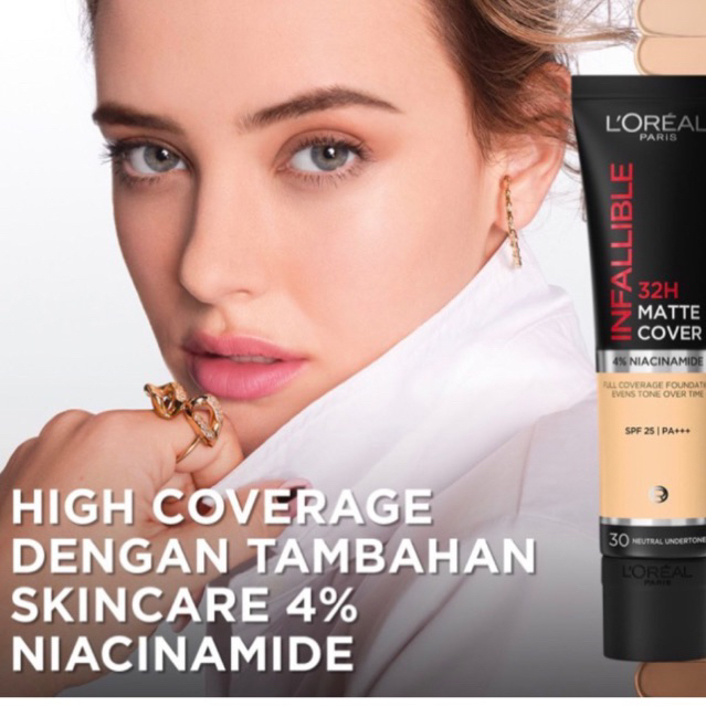 isi 35ml L’Oreal Paris Infallible 24H Matte Cover Foundation adalah foundation yang tahan hingga 24 jam, dengan hasil natural matte dan high coverage! Formula yang transferproof, waterproof, dan sweatproof, menjaga makeup mu tampil sempurna sepanjang hari.