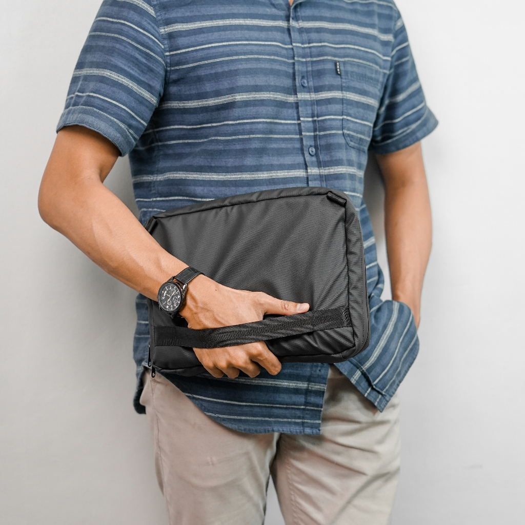 Dengan ukuran yang lebih besar dibanding handbag biasa, tas ini bisa menampung hingga Ipad Pro 11”. Ditambah dengan padding yang tebal untuk mengurangi resiko tab kamu terbentur dari luar.