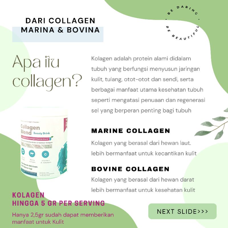 Collagen blend adalah campuran dari 2 jenis kolagen yaitu Marina Kolagen yang berasal dari hewan laut & Bovina Kolagen yang berasal dari hewan darat, agar mendapatkan manfaat keduanya sekaligus baik dari kesehatan & kecantikan.