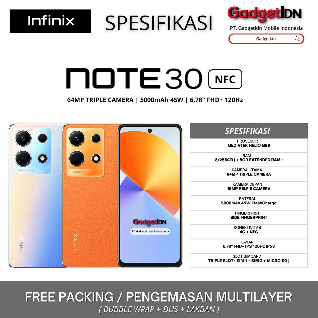 INFINIX NOTE 30 NFC 4G 8/256GB ( +8GB EXTENDED RAM ) GARANSI RESMI INFINIX Beli Sekarang dan Dapatkan 25 Item EXCLUSIVE BONUS