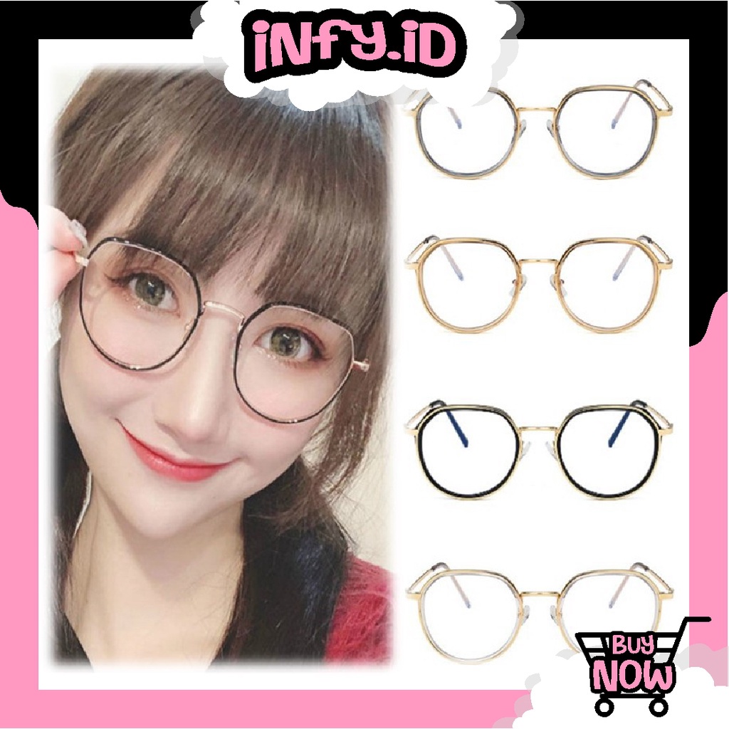 Aksesoris Fashion > Kacamata & Aksesoris > Frame & Lensa Kacamata > INFY - R447 Kacamata Wanita Antiradiasi Kacamata Anti Radiasi Metal Gaya Retro Untuk Pria Wanita