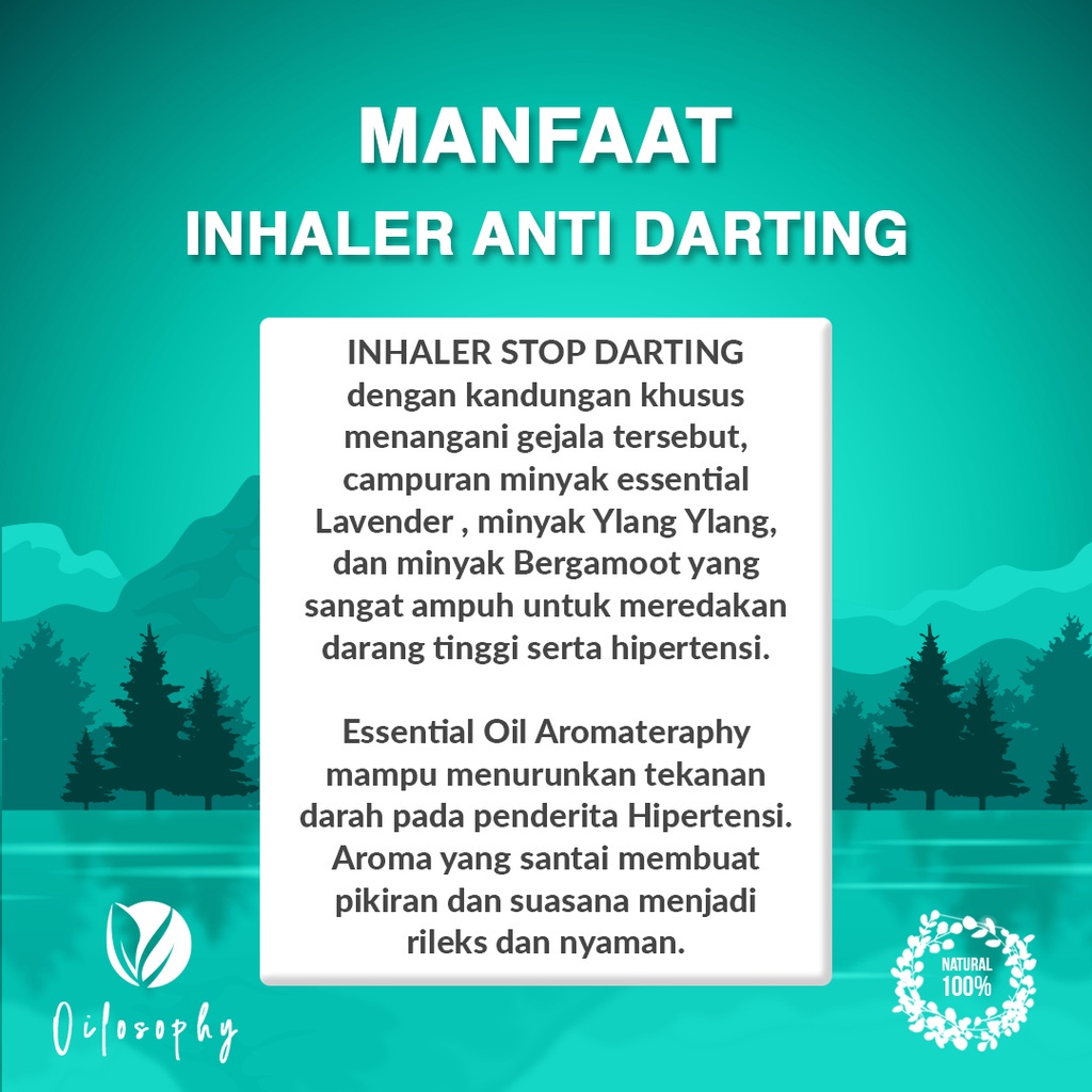 Kini, ada INHALER ANTI DARTING dengan kandungan khusus menangani gejala tersebut, campuran minyak essential Lavender , minyak Ylang Ylang, dan minyak Bergamoot yang sangat ampuh untuk meredakan darang tinggi serta hipertensi.