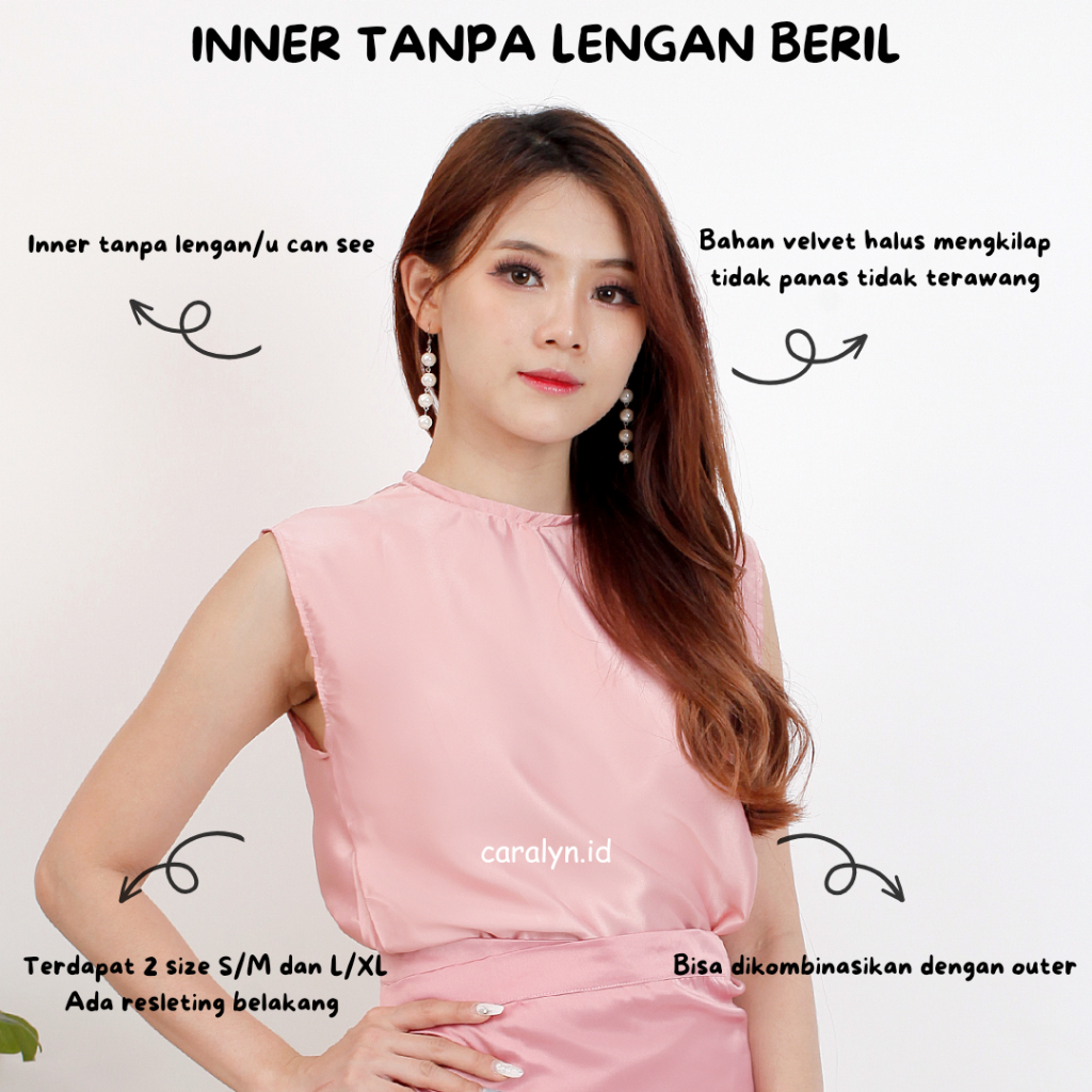 Untuk Kamu Yang Sedang Cari Daleman Untuk Outer yang tanpa lengan Karna Mungkin Takut Gerah Inner ini sangat cocok sekali ya..Materialnya dari satin velvet yang halus banget dan tidak terawang.. Gambar 100% Asli Diambil Sendiri, Tidak Perlu Takut Kalo Barang Yang Diterima Gak Sesuai. Jahitan Presisi, Rapi, Dan Kuat.