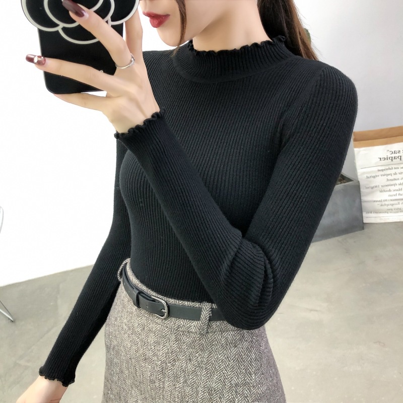 Inner rajut turtleneck inner Manset Rajut Wanita Lengan Panjang manset keriting manset kriwil
