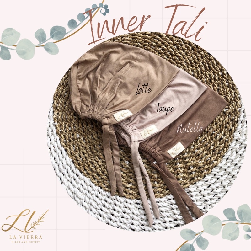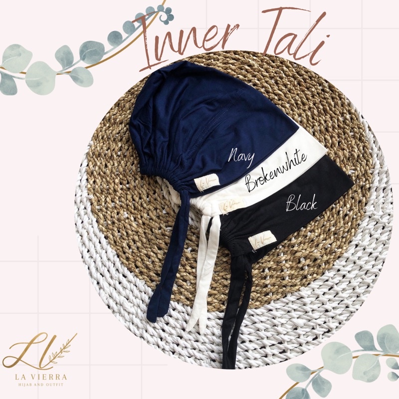 Inner tali ini menggunakan bahan kaos rayon uniqlo premium yg dingin, menyerap keringat dan tdk bikin sakit di kepala dan kuping. Dengan tali di belakang jadi ukuran nya bisa di adjust. Finishing jahitan rapi khas La Vierra, dg packaging pouch yang cantik.