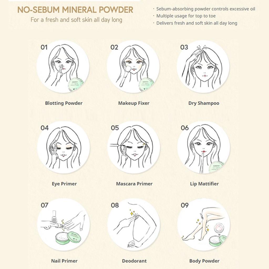✅CARA PENGGUNAAN 1.Dari wajah ke tubuh Tips untuk multi guna bubuk mineral tanpa sebum